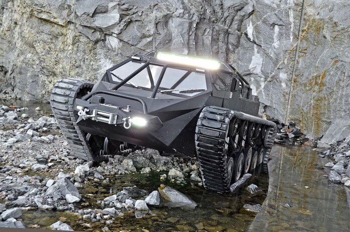 This Ripsaw EV2 (Extreme Vehicle 2) is available for purchase by anyone with enough money to spare. Custom-built to order, the Ripsaw seen here features a fully sealed aerospace-aluminum hull with floatation capability and tips the scales at around 8,000 pounds. With an available 600hp on tap and a silly amount of torque, the 6.6L Duramax diesel engine will power to the Ripsaw’s tracks from 0-100km/h in less than 8 seconds. Actual top speed and output are dependent on the engine’s level of tune as owners are abkle to configure their own Ripsaw.
