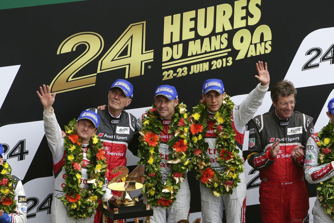 The twelfth Audi victory at Le Mans was achieved by the number ‘2’ Audi R18 e-tron quattro driven by Loïc Duval (France), Tom Kristensen (Denmark) and Allan McNish (Scotland) who had started the race from the pole position. For Duval, who had clinched the pole position on Wednesday, this was the first success at the classic French endurance race and the third for Allan McNish. Tom Kristensen, who has been the sole record holder of the race since 2005, triumphed for the ninth time.