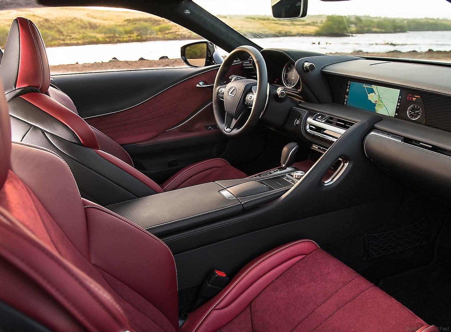 Comfort and luxury are no less thorough. The LC’s exclusive seats feel as good as they look, with a new two-part construction technique where the main part of the seatback drapes the over the shoulder area and then wraps around the seat back. Bolsters in the shoulder area help hold the driver securely in cornering maneuvers, and the available sports seats feature even more substantial bolsters.