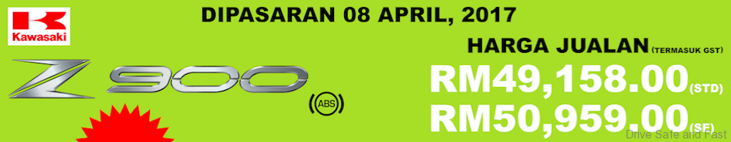 1. Kawasaki Z900 ABS (Standard), Sales Price is RM49,158.00 (inclusive GST)