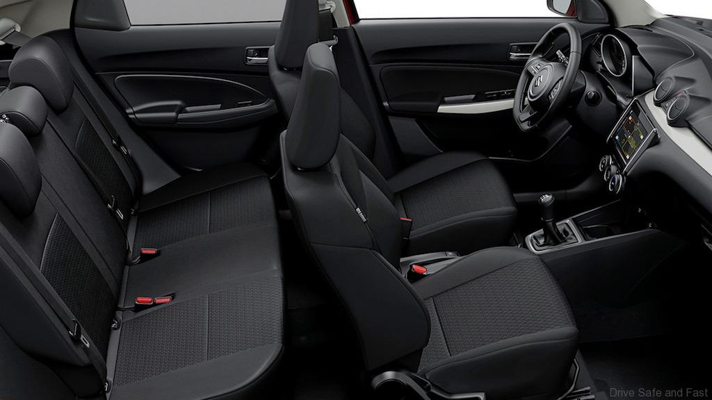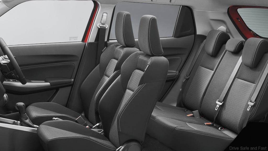 During interior design, lowering the seating positions has ensured sufficient head clearance (the same as for outgoing Swift for the front seats) and added 23mm vertical and lateral space for the rear seating positions. The front seats have been moved outwards by 10mm which has increased the centre-on-centre distance between them by 20mm.