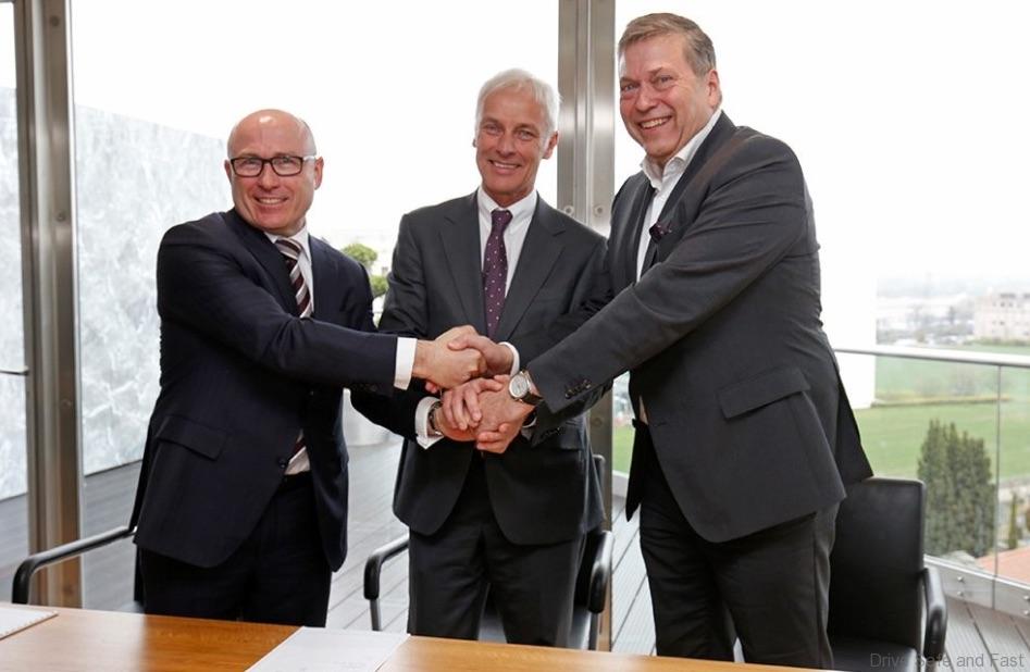 Matthias Müller, CEO of Volkswagen AG, Bernhard Maier, CEO of ŠKODA Auto and Günther Butschek, CEO und Managing Director of Tata Motors Ltd., have signed a memorandum of understanding (MoU) which forms the basis for exploring long-term strategic cooperation in clearly-defined fields. The goal of the strategic alliance is to bundle the expertise of both car manufacturers with a view to jointly developing vehicle components and possibly also vehicle concepts.
