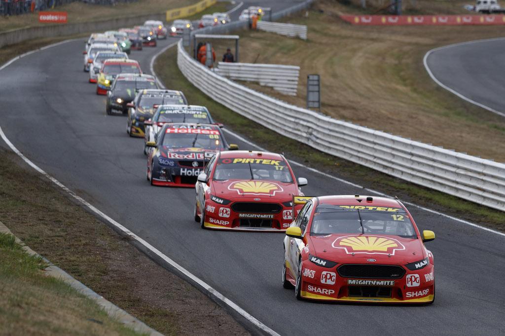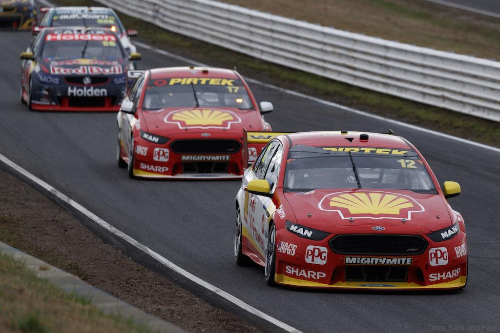 A series of Safety Cars ensured the race reached its time cut-off eight laps short of its scheduled 84, with just three laps from the final restart to the chequered flag. Jamie Whincup trailed the Shell Fords home in third ahead of Craig Lowndes, David Reynolds, Cameron Waters, Chaz Mostert, Tim Slade and Shane van Gisbergen.
