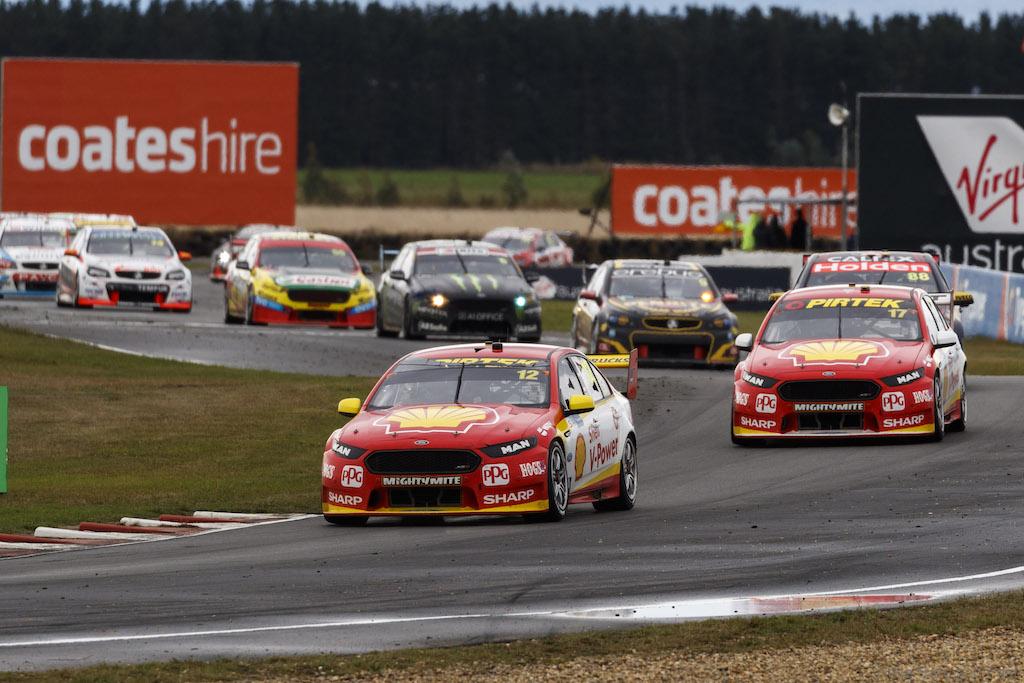 Fabian Coulthard and his Shell V-Power Racing team-mate Scott McLaughlin drove to a clear win an incident packed finale to the Tyrepower Tasmania SuperSprint.