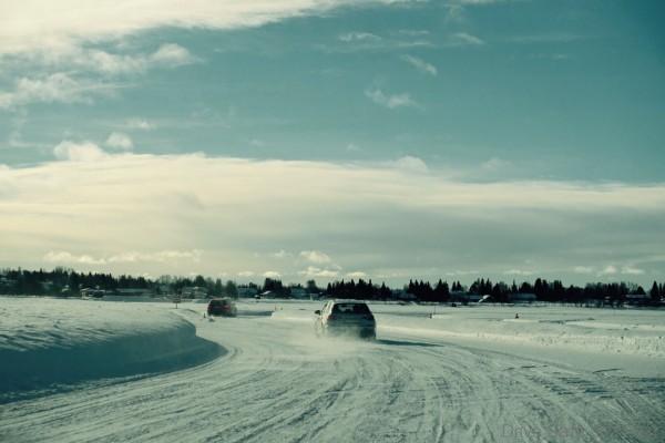 As fun as it was to get the lines wrong, we eventually had to get serious about driving fast. And when it comes to driving fast on ice, you’re really just driving slow enough to not go sideways. To our surprise, we were able to get up to pretty ridiculous speeds. 75km/h on the long straights, 50-60km/h on long bends.
