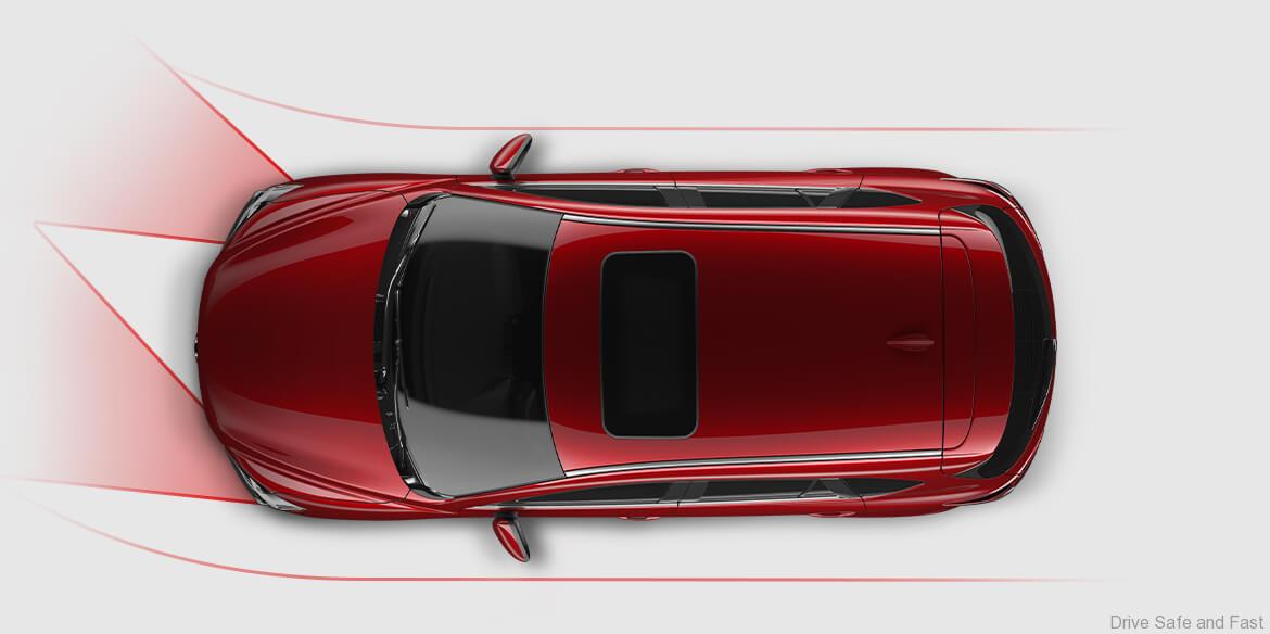 Blind Spot Monitoring System (ABSM) does what is says on the tin. It uses a millimetre-wave radar sensor to monitor blind spot areas and alert you to approaching vehicles when changing lanes. It then flashes a symbol in the same door mirror as the indicated direction and makes an audible sound to warn the driver.