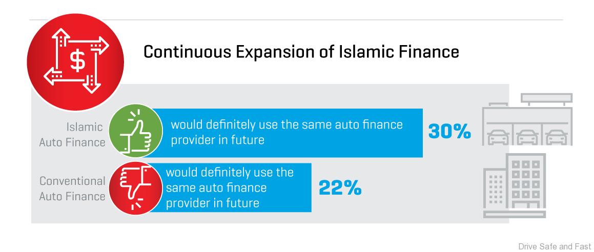 Among customers who selected an Islamic auto finance product, more than 30% say they “definitely would” use the same finance provider for their next purchase, compared with 22% among customers who purchased a conventional auto finance product.
