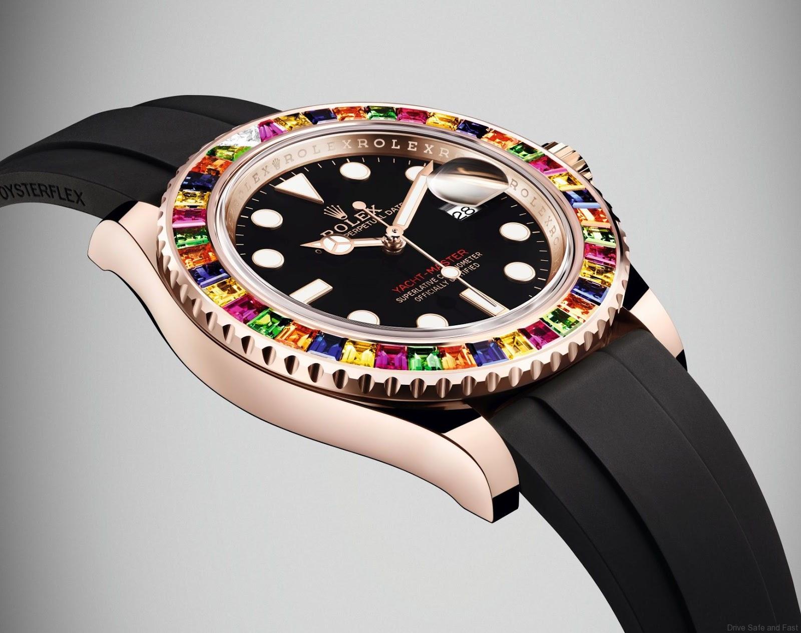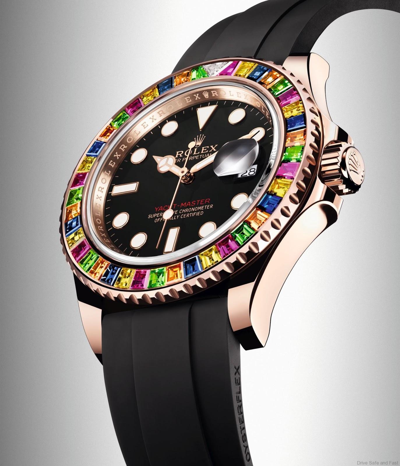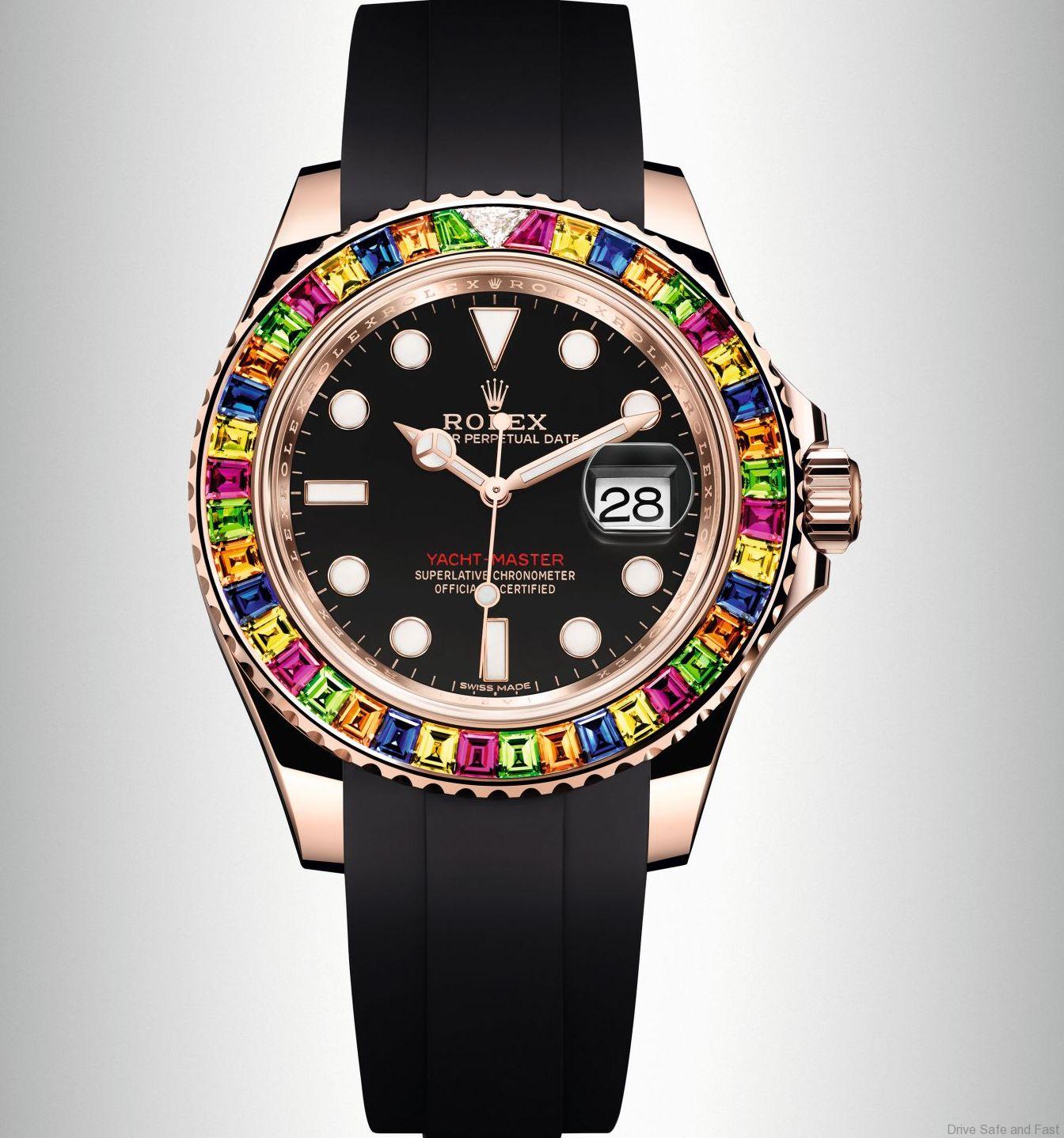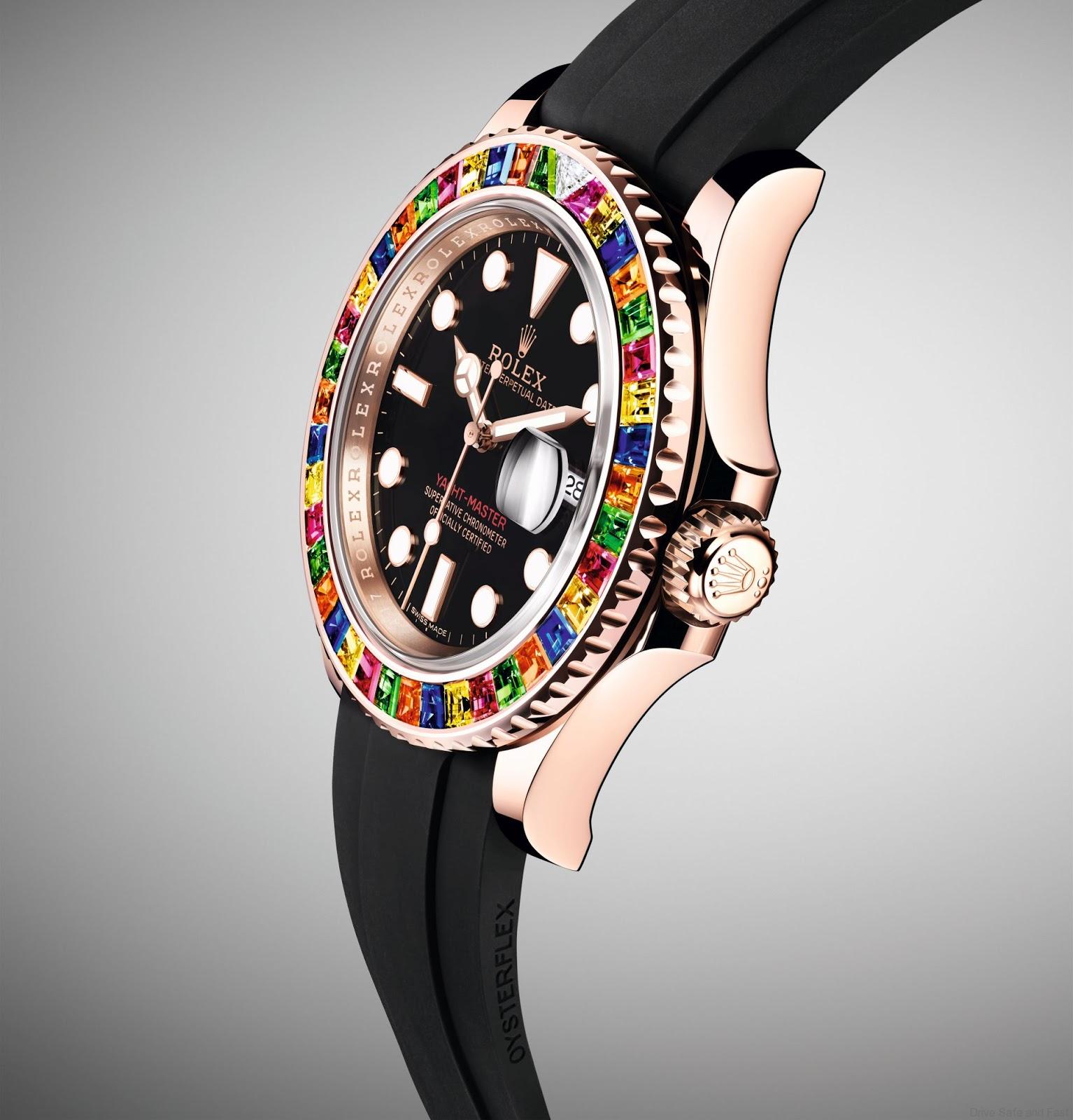 Dressed in an 18 ct Everose gold case with a black gloss finish dial, the new gem set version of Rolex’s emblematic nautical watch Oyster Perpetual Yacht-Master 40 features a bidirectional rotatable bezel adorned with multicolour sapphires, green tsavorites, and a triangular diamond at 12 o’clock. Waterproof, precise and reliable, the Yacht-Master 40 embodies the privileged ties between Rolex and the world of sailing that stretch back to the 1950s. This version is equipped with the innovative, elastomer Oysterflex bracelet developed and patented by Rolex. Like all Rolex watches, the new Yacht-Master 40 carries the Superlative Chronometer certification redefined by Rolex in 2015.