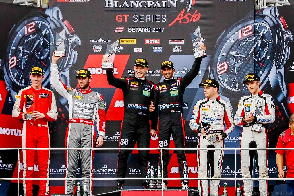 Mitchell Gilbert and Aditya Patel of OD Racing Team recorded a highly impressive victory in round one of Blancpain GT Series Asia in their #86 car serviced by Absolute Racing. In a strong performance from the Audi GT3 cars on the grid, Audi R8 LMS Cup stars Cheng Congfu and Sun Jingzu took their #13 Milestone Racing car home in third in the Pro/Am class, with the #19 KCMG entry of Naoto Takeda and Takuya Shirasaka from Japan climbing the top podium step for amateur competitors.