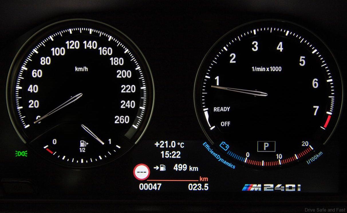 The BMW M240i is powered by a three-litre straight-six engine complete with direct injection, M Performance TwinPower Turbo technology with twin-scroll turbocharging, fully variable valve timing (VALVETRONIC) and Double- VANOS variable camshaft control. This unit generates output of 340 hp and maximum torque of 500 Newton metres, which can be summoned from as low down as 1,520 rpm and remains on tap up to 4,500 rpm.