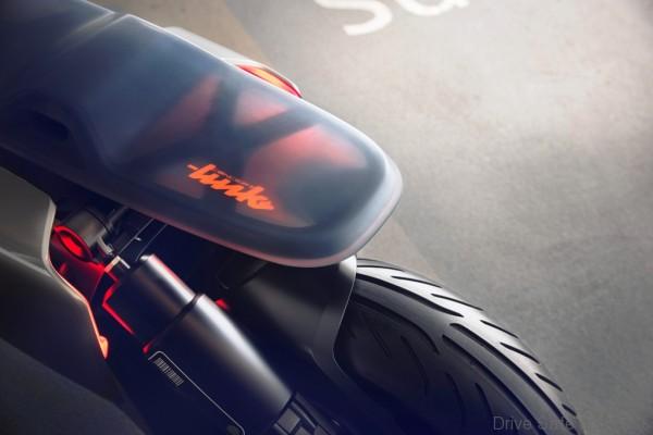 The Concept Link also deliberately showcases the technology used as part of the design package. That is why the side panels don’t completely cover the side section at the rear. Instead they stretch across the vehicles side like little wings allowing views of the technical elements like drive unit, cooling ribs, single-sided swing arm, spring strut and tooth belt. At the same time they help improve aerodynamic air flow. The iconic rear lights have been integrated into the rear side panels in the form of two C-shaped light elements.
