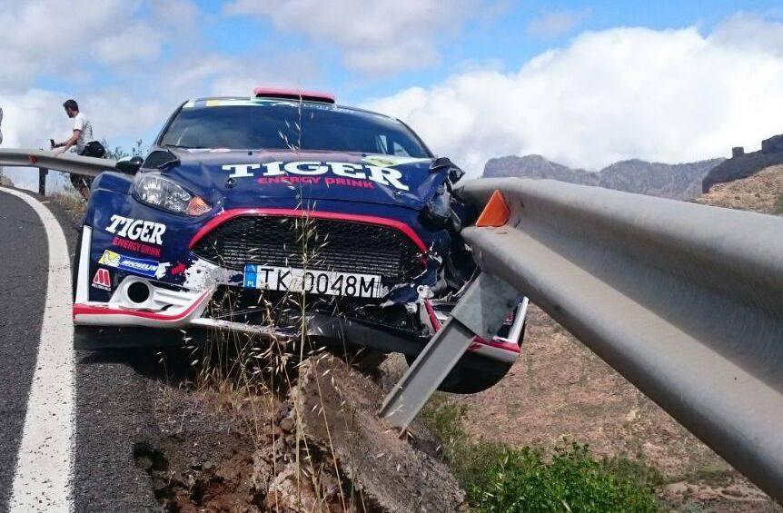 A rally driver (and his co-driver) got insanely lucky this week following one of those mistakes we hear about about but rarely see on the tube. Tomasz Kasperczyk was competing in the Rally Islas Canaries event in the Canary Islands when he nearly drove his car off the side of a cliff. Luckily, a metal guard rail was there to save the day and car. The rail somehow absorbed the high-speed speed collision and prevented the car from tumbling down the side of the mountain. (pictures by GranCanaria TV)