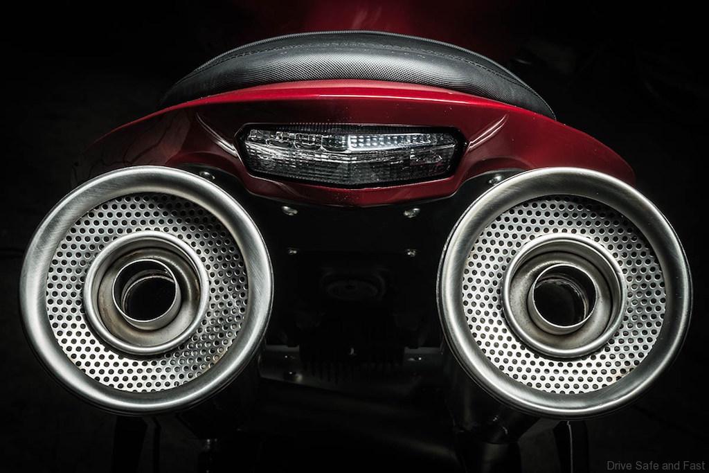 The Bialbero 1200 CorsaCorta remains at the centre of everything, but the famous twin-cylinder motorcycle is now enhanced with two-way switchable ABS, electronic gears, and a new engine management system. The chassis has also been completely renewed, from the new dimensions of the trellis frame to the fully adjustable suspension. The front braking system uses monoblock 4-piston radial mounted callipers with a double 320 mm floating disc, while for performance and durability, the aluminium-forged rims are fitted with Pirelli dual compound tyres.