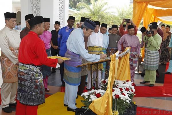 His Royal Majesty Sultan Sharafuddin Idris Shah Al-Haj Ibni Almarhum Sultan Salahuddin Abdul Aziz Shah Al-Haj, the Sultan of Selangor, officiates Masjid Perodua, the first Masjid to be built by a corporate entity in the Hulu Selangor district.