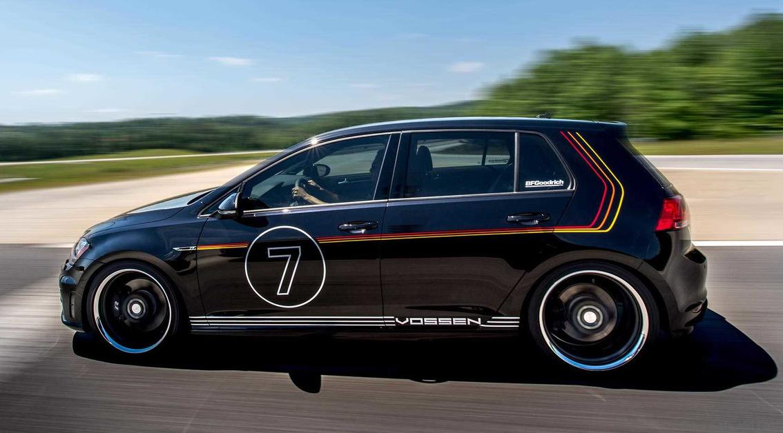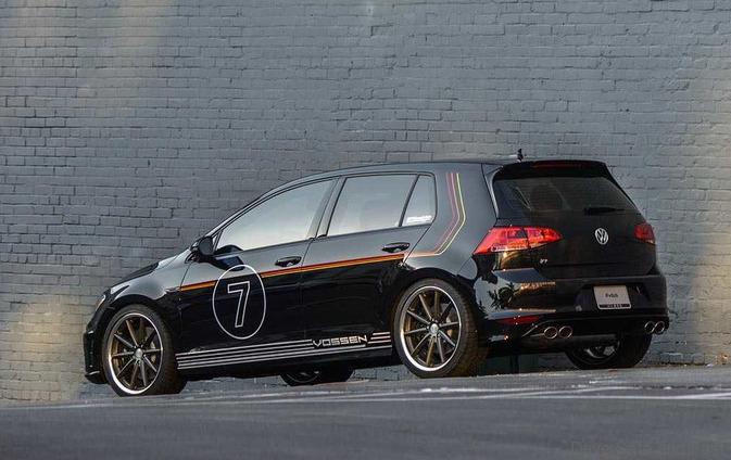 The Golf R Heritage concept features an homage to the car’s German heritage with a striking stripe package in the colors of the German flag and a white, lower rocker accent stripe pattern. Vossen has provided the wheels, starting with the VWS-1 finished in matte gunmetal and polished anodized silver. The wheels are shod with GFORCE COMP-2 A/2 tires from BFGoodrich and the car has been lowered on a sport spring package from H&R