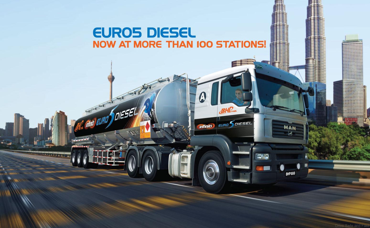 Why BHPetrol Euro5 diesel? In November 2014, BHPetrol was the first company in Malaysia to offer diesel that meets the much more stringent Euro5 standard. With the availability of this much cleaner ultra-low sulphur fuel, motorists with modern common rail, direct injection diesel engines can now enjoy the full performance and efficiency available from their engines. BHPetrol’s Infiniti Euro5 Diesel is reformulated with the latest German additives specially engineered to restore fuel economy and engine power in common rail, direct injection diesel engines. What‘s more, it’s treated at the maximum dose rate to restore full engine power, outperforming OEMs’ requirements.