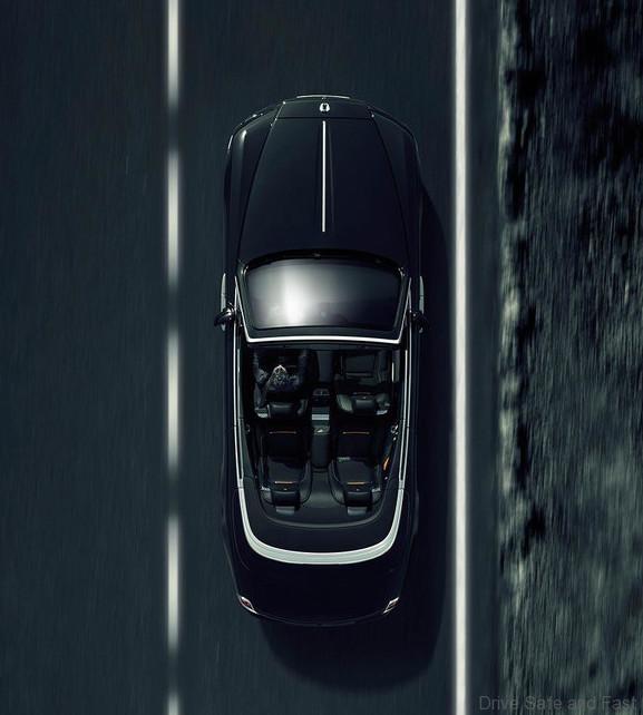 The Dawn Black Badge at the Festival of Speed is presented in a deeply intense shade of black. Multiple layers of paint and lacquer have been fastidiously applied and hand-polished in a process that amounts to the most exhaustive painting and polishing process ever used for a solid paint colour. The result clothes Dawn’ s sensuous lines in the deepest, darkest and most intense black to ever grace a production car surface. The roof, which opens in a ‘ Silent Ballet’ to allow in the sounds of the night, is also only available in black canvas, whilst the rear deck is finished in black leather.