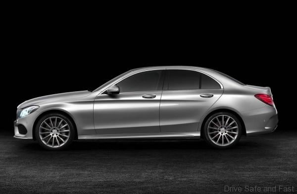 To identify a C-Class, look at the signal lights. In the C-Class, they are positioned above the white Daytime Running Light strip and points towards to grille.