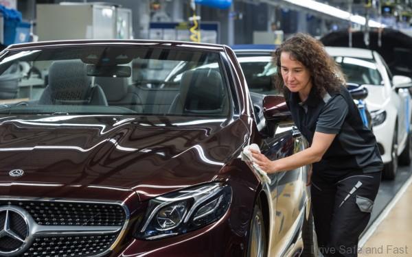 Series production of the new E-Class Cabriolet has started at the Mercedes-Benz plant in Bremen. The open four-seater with a classic fabric soft top combines puristic, sensuous design with long-distance comfort for four occupants and the latest technology. This includes comprehensive smartphone integration with a wireless charging and key function, a widescreen cockpit and the latest assistance systems. The market launch is in late summer 2017.