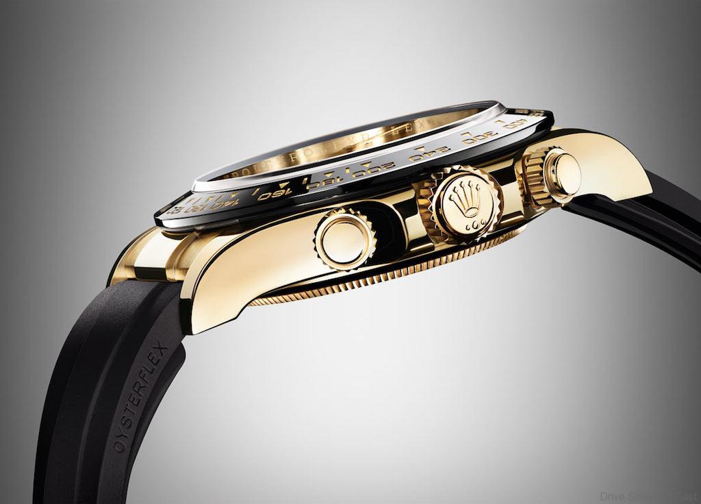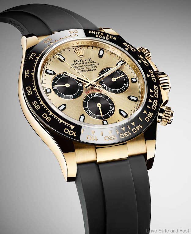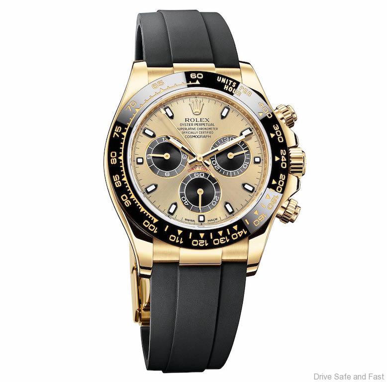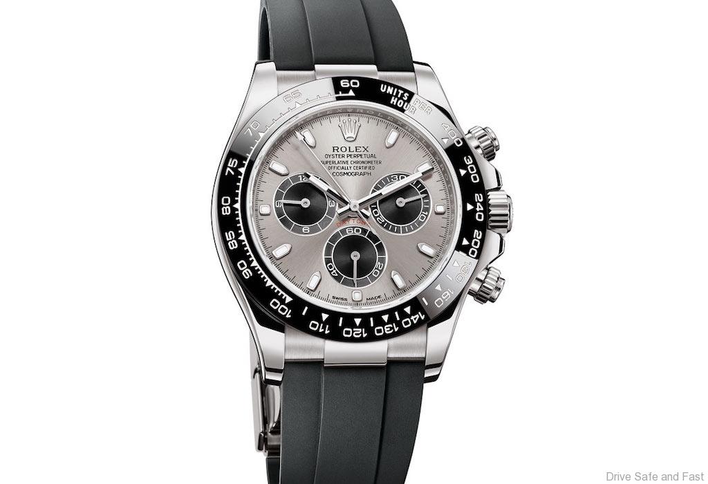 Rolex will launch an 18k white gold version of the Daytona this year, complete with Cerachrom bezel. What we didn’t see coming though, was the fact that it would be paired with a rubber Oysterflex bracelet. In addition to the white gold version, there is also an 18k yellow gold model and an Everose gold model.