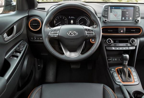 The unique features of the exterior continue inside, with a strong horizontal character line creating a wide and spacious feel. Even with its compact dimensions and low roof line, the Kona delivers best-in-class interior space.