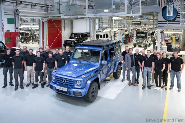 The 300,000th vehicle of the legendary G-Class has rolled off the production line at Magna Steyr in Graz, 200 km in the south of the Austrian capital Vienna. The record vehicle is a Mercedes-Benz G500 in the colour designo mauritius blue metallic with black leather seats and contrasting white stitching (fuel consumption combined: 12.3 l/100 km; combined CO2 emissions: 289 g/km).