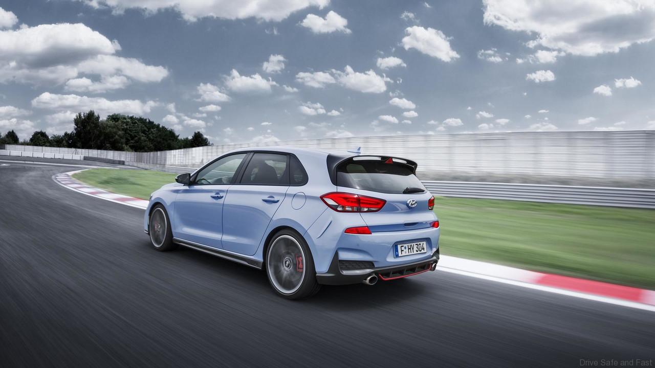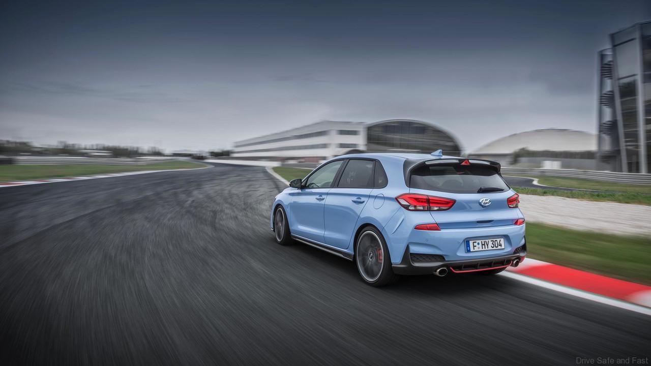 It sports unique high-performance design elements such as aggressive-looking front and rear bumpers and a new rear spoiler, paired with the coherent, timeless design of the i30 range. According to the principle “form follows function”, designers worked closely with aerodynamic specialists to define the right ratio between the car’s downforce, drag and aerodynamics to create the best possible driving experience. The resulting lowered body together with the newly designed aerodynamics give the car its sporty silhouette and strong stance, while enhancing road balance and race track capabilities.