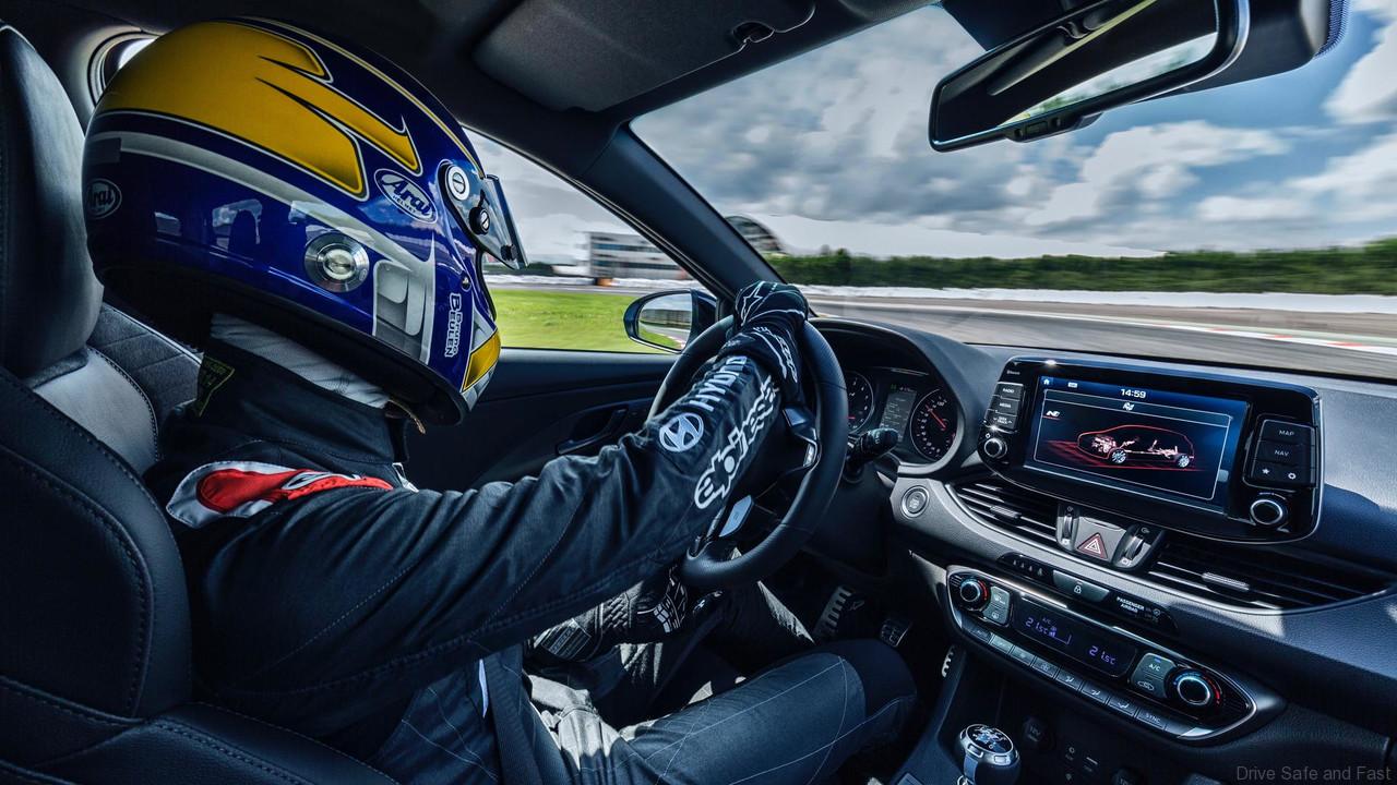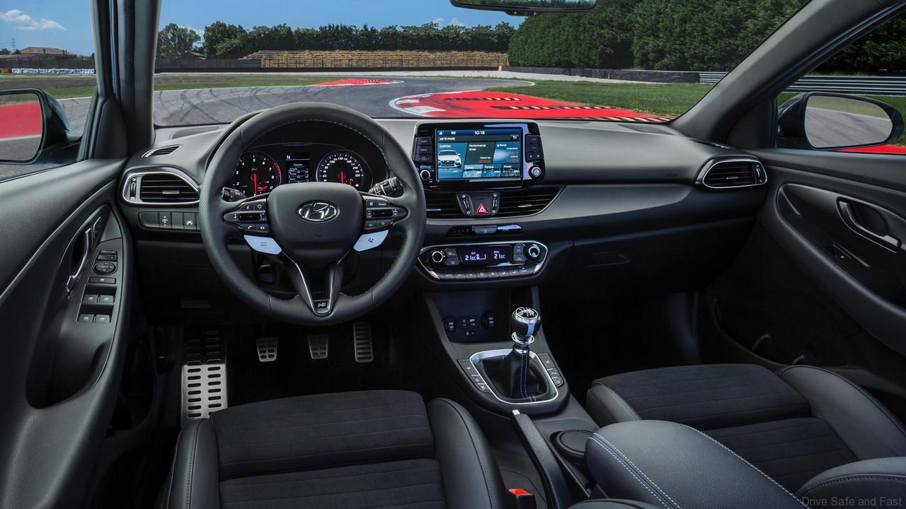 The i30 N has been developed to make the driver’s heart beat faster when he or she gets behind the wheel. Instead of focusing on pure numbers, Hyundai Motor has chosen to emphasise driving pleasure and the emotional impact on the driver’s heartbeats per minute (BPM), rather than simply measuring revs per minute (RPM). When the driver hits the throttle and shifts through the gears, the Rev matching function supports smooth gear shifting, while the overboost function increases torque (+8%) and acceleration (+6-7%). The feeling is enhanced by the car’s emotional sound from the dual muffler exhaust featuring the variable exhaust valve system. The cockpit of the i30 N shows key performance parameters through the new instrument cluster and the 8-inch free-floating screen’s modes such as the G-Force meter for live tracking of the performance.