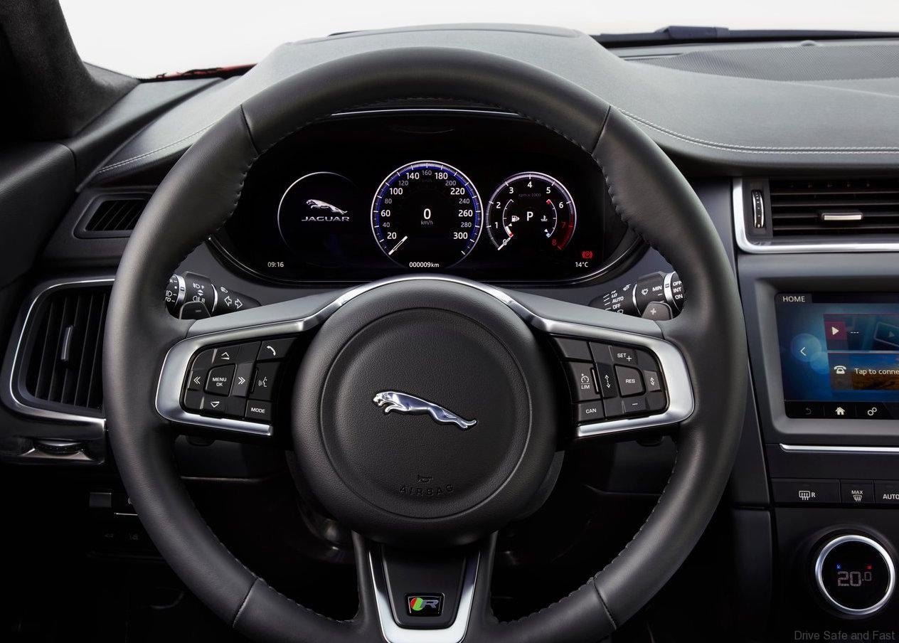 Specifying the R-Dynamic model enhances the Jaguar’s sporty streak, providing body-hugging sports seats with contrast stitching and a Jet Morzine headlining. Brushed stainless steel treadplates and pedals combine to create a sports-focused interior while soft-grained leather on the R-Dynamic-branded steering wheel and the addition of gearshift paddles provide more focussed benefits.