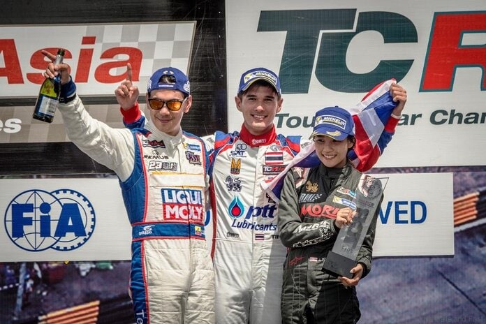 That allowed the closely following Tin Sritrai to move into the lead, and after the Safety Car was deployed, the race was ultimately declared, handing the Thai driver back-to-back wins at home, with Liqui Moly Team Engstler’s Diego Moran and local favourite Nattanid Leewattanavaragul completing the podium.