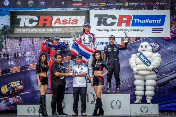 The race was ultimately given a full restart 20-minutes later, with points leader WS Lai getting the jump on pole-sitter Tin Sritrai, before the local hero eventually forced his way back to the front to the cheers of the big Bangsaen crowd, to win comfortably over Lai and TCR Thailand points leader Pasarit Promsombat.
