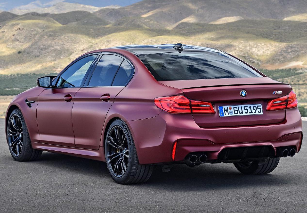 The new BMW M5 First Edition has exclusive Frozen Dark Red Metallic paintwork and also includes BMW Individual high-gloss Shadow Line trim with extended features. This means that the kidney grille, the M gills and the four tailpipes of the sports exhaust all come in high-gloss black. The M5 First Edition is fitted as standard with 20-inch seven-double-spoke light alloy wheels in black.