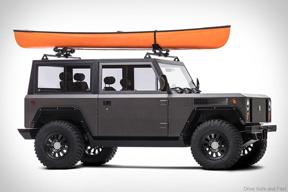 Its electric powertrain is powered by either a 60 kWh or 100 kWh battery, offering 120 miles or 200 miles range, respectively. Hooked to dual motors for full-time all-wheel-drive, it offers 360bhp and a 0-60 time of just 4.5 seconds. Inside, its utilitarian space is made more inviting with leather seating for four, a leather steering wheel, and a marine-grade, Bluetooth-enabled stereo system, while the exterior is finished in a unique “Gunhouse” Grey with black accents and a black satin wheel finish for a no-nonsense appearance.