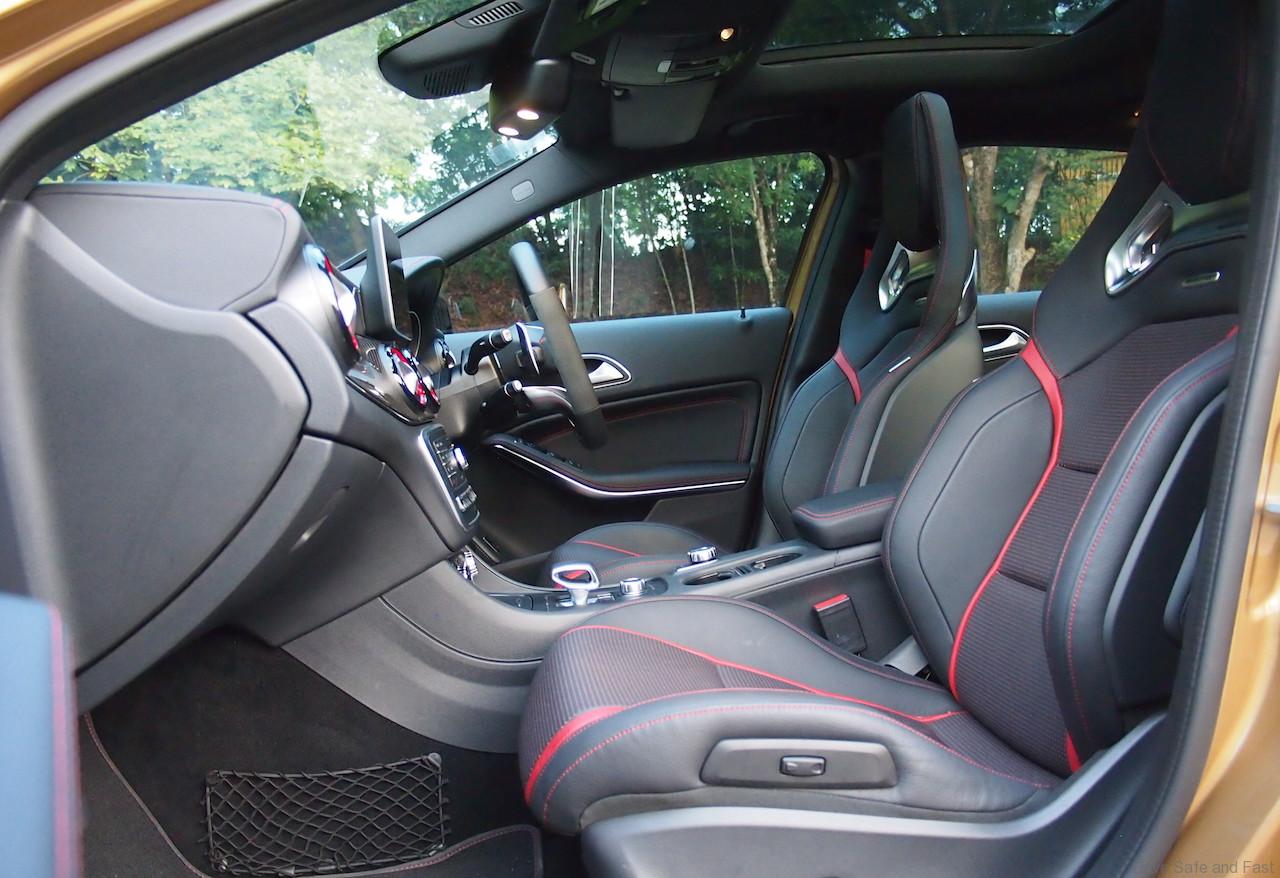 2.The hand built AMG engine produces 381bhp at 6000rpm……the Golf R’s 1997cc engine at 310bhp and the BMW 140i’s 2998cc at 316bhp cannot compete.