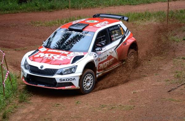 After the problem he had yesterday Gaurav Gill drove his MRF Skoda Fabia R5 like he stole it. He battled all day to take 2nd spot from Jari Ketomaa all day and finally took the 2nd spot on the last stage SS14 by a mere 18 second.