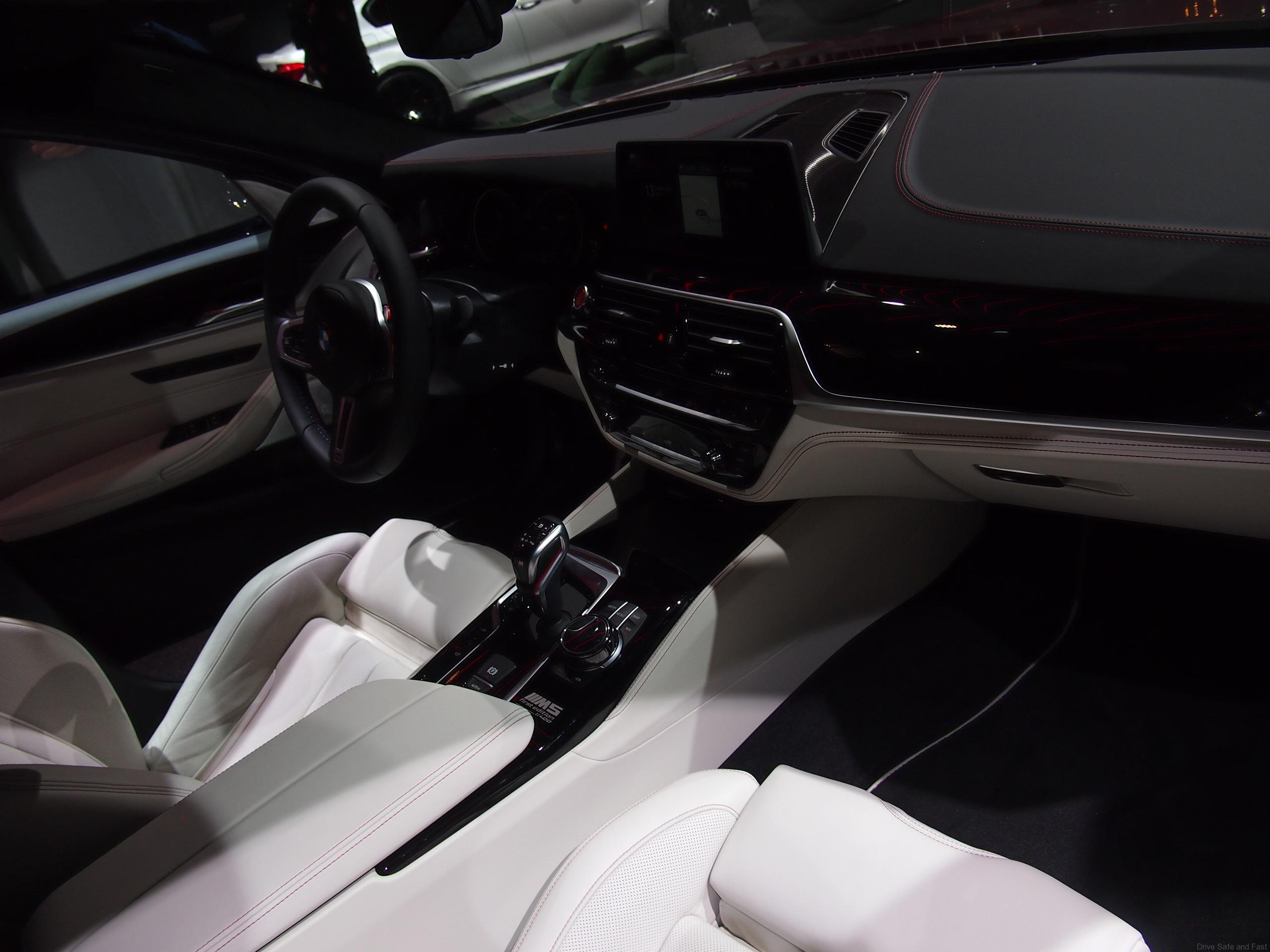 The BMW M5 First Edition also has a very individual flavour inside. The Piano Finish Black applications are complemented by a plaque on the centre console indicating the car’s production number (“M5 First Edition 1/400”) and pointing to the exclusivity of this BMW M5. The M5 First Edition comes as standard with high-quality M multifunction seats. It is also available with fullleather upholstery in Smoke White with red contrast stitching.