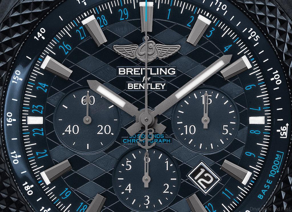 The Bentley GT Dark Sapphire Edition has a 1.69-inch diameter case that uses Breitling’s proprietary Breitlight polymer. The material is scratch and corrosion resistant. It’s also not magnetic or allergenic. Dark Sapphire color is similar to a shade available on the Continental GT, and the trim around the dial features a diamond pattern that evokes the stitching inside the new Bentley.