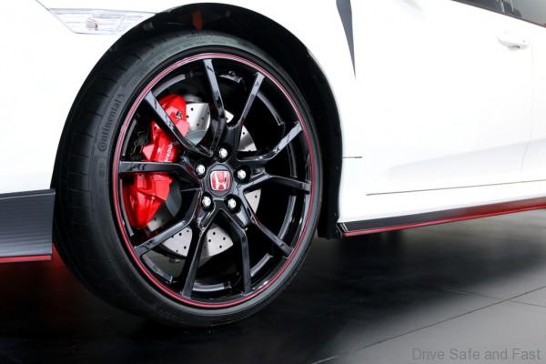 The Civic Type R is also equipped with 20-inch aluminum alloy wheels as well as high performance Brembo brakes. A cooling duct at the front bumper opening introduces fresh air, enabling efficient air cooling and greatly improving braking performance at high speed.