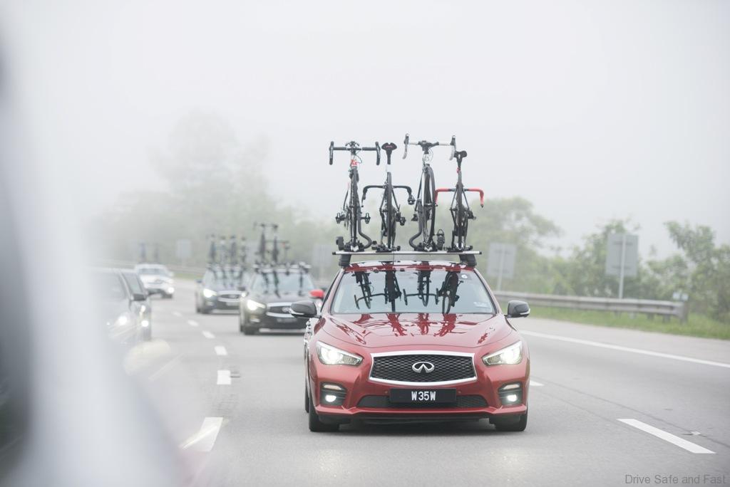 The fleet of Infiniti vehicles comprising of the Q50 2.0L turbo, Q60 2.0L turbo and QX70 3.7L V6 were adorned with decals and installed with Thule roof rack for the activity, which attracted 32 cycling enthusiasts.