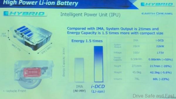 Unlike the previous Honda IMA Hybrid system, the battery tech used here is Lithium-ion based. That means it can hold 1.5X more charge while being 23% smaller in terms of volume and 5.6% lighter. This means the boot space is not affected. Its voltage and system output is also far superior.