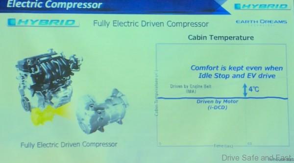 With these hybrid models, the air cond compressor is fully electric and can still operate when the engine shuts off in traffic. This ensures cabin temperature stays within 4 degrees celcius of the set temperature at all times.