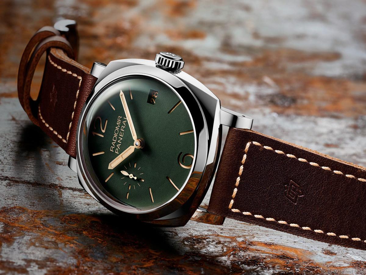 Panerai’s new Green Dial watches might be one of their best looking collections yet. The watchmaker has perfectly paired a dark green dial with luminous beige hour markers and gilded hands on a brown leather strap with beige stitching.