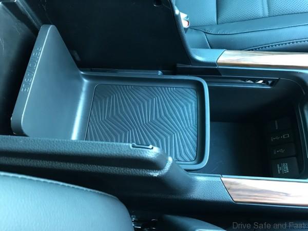 A big feature of the interior is the centre storage compartment. It features a semi-open design that customers can configure. You can have a little tray for your smart phone or open things up and put a handbag in there. The options here are very fresh, nice to see Honda is shaking things up. The semi-open design is also gadget friendly, as it lets occupants run charging cables through the USB ports without interference.