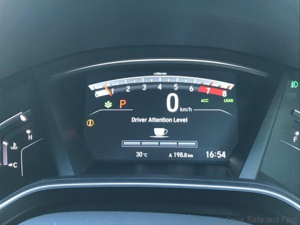 But unlike the Civic, the CR-V’s tachometer is pretty horizontal in its alignment. It’s less sporty, but leaves a lot of room for the CR-V’s other Honda Sensing functions to be displayed.