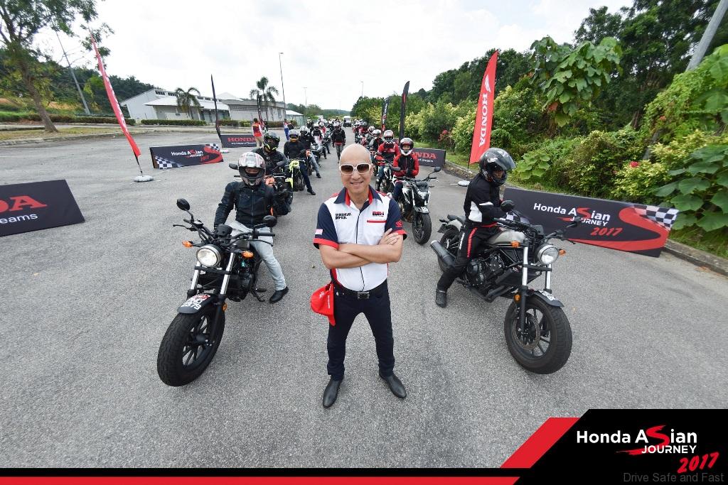 Honda announced that the Honda group of companies in the Asia & Oceania region today kicked off the “Honda Asian Journey 2017,” a 570-km Honda big bike caravan that will cruise through Peninsular Malaysia for four days, from October 26 to October 29, 2017, ending up at the Malaysian Motorcycle Grand Prix. Around 50 journalists, motorcyclists, Honda dealers, and associates from five countries – Indonesia, Vietnam, Malaysia, the Philippines, and India – will ride together to the ultimate destination, the Sepang International Circuit.