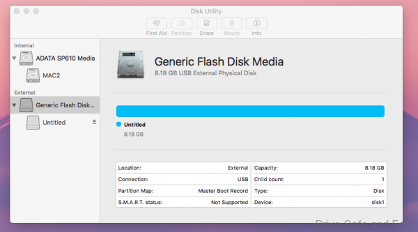 Step Three: Identify the drive you need working. In our example, we’re using a generic flash drive (but it will look similar on a hard drive). Select it as below