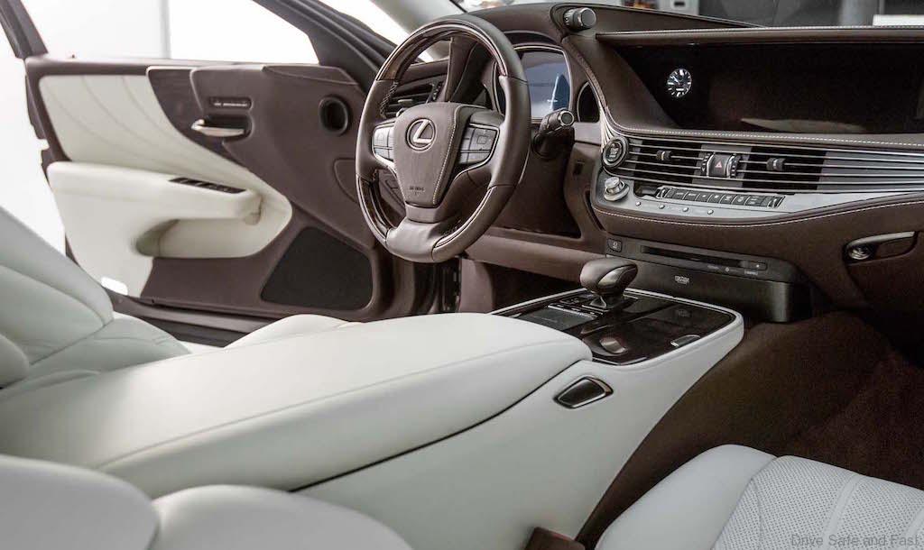 – Application of the GA-L (Lexus Global Architecture–Luxury) platform has resulted in low, poised-to-pounce styling, while large-diameter tires create a commanding presence. To produce a daring coupe silhouette that sets the new LS apart from hitherto four-door sedans, Lexus employed a six-light cabin design(3) coupled with a body form in which the fenders dynamically project from a sharp outline that flows from front to rear. Additionally, flush-surface windows, which reduce the unevenness between the side-window glass and the door frames, create a smoother and more beautiful body line.