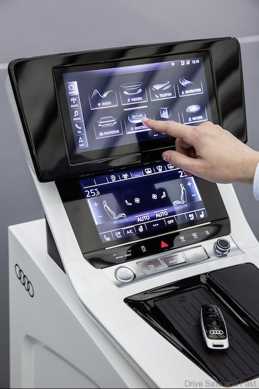The new Audi A7 systematically continues the digitalization strategy of the A8. The interior architecture melds seamlessly with Audi’s new MMI touch response operating concept. It replaces the rotary pushbutton and the conventional buttons and controls of the previous model with two large, high-resolution touch displays.