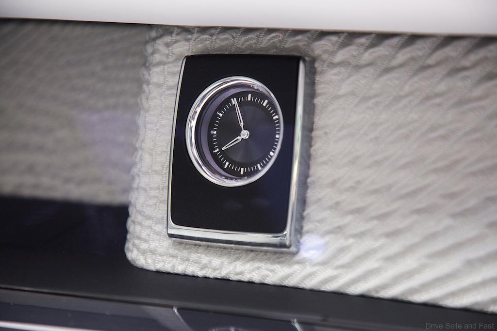Also behind the glass of ‘The Gallery’ are housed the analogue clock – a nod the fact that it is “the loudest sound you can hear in a Rolls-Royce …” and the central information screen which can be retracted behind the centre stack when not in use.