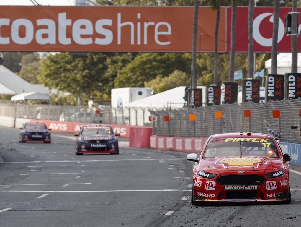 A strong opening stint from Premat lifted the Shell Ford into contention from 13th on the grid, before McLaughlin leapfrogged all three Commodores with an early second stop.